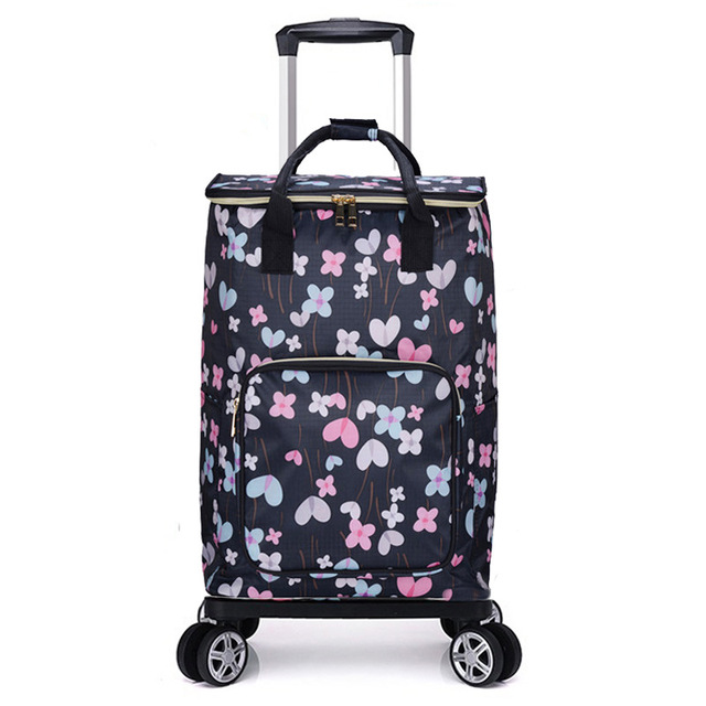 Small cart Foldable Shopping Bag Waterproof Handbag with Wheels Big Capacity Grocery Shopping Cart Rolling Trolley Bag For Women – Flowers