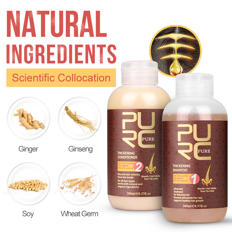 PURC Fast Hair Growth Shampoo Conditioner Thickener Anti Loss Hair Grow Shampoo Set Scalp Treatments Hair Care Products 600ml
