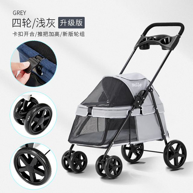 Pet Stroller Lightweight Dog Cat Cart Four-wheel Shock Absorption Folding Dog Transport Cart Breathable Stroller Outdoor